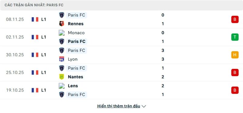 - Phong độ của Paris FC