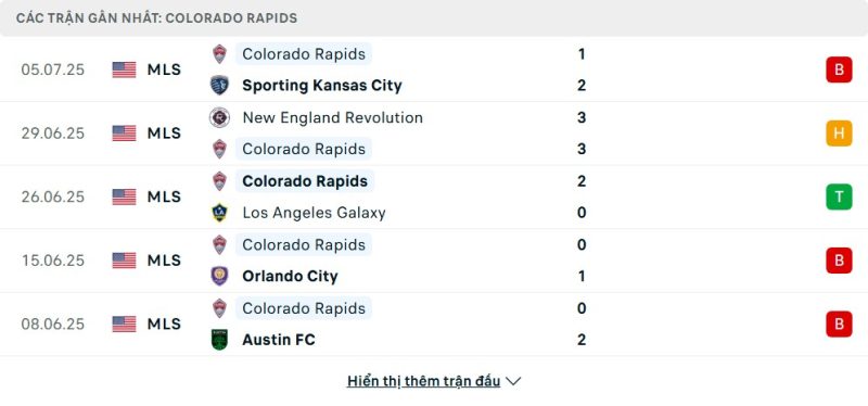 5 trận gần nhất của Colorado Rapids: L-D-W-L-L