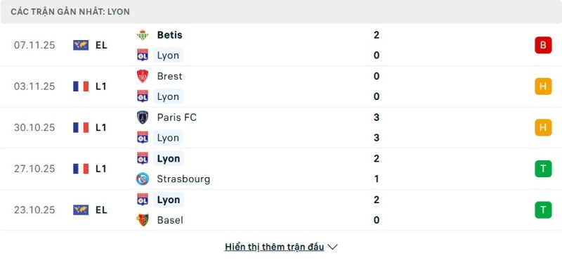 Lyon đang có một vị trí trong nhóm dự cúp châu Âu khi đứng thứ 6 trên bảng xếp hạng Ligue 1 với 20 điểm sau 11 vòng đấu. Tuy nhiên, phong độ của thầy trò HLV Paulo Fonseca đang có dấu hiệu chững lại đáng báo động. Họ đã không thắng trong 4 vòng đấu gần nhất, bao gồm 2 trận hòa và 2 trận thua. Trận hòa 0-0 trước Brest ở vòng trước đã phơi bày nhiều vấn đề trên hàng công. Xen kẽ đó, họ cũng vừa để thua Real Betis 0-2 tại Europa League, cho thấy một lịch thi đấu dày đặc đang ảnh hưởng đến thể lực của toàn đội.