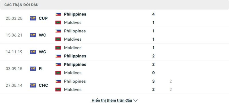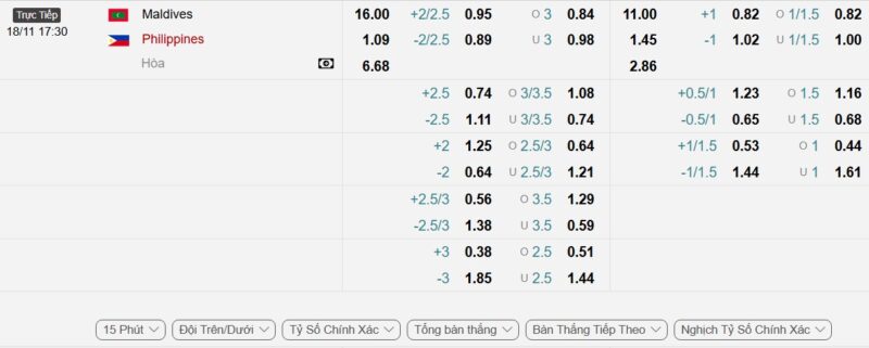 Bảng Tỷ lệ kèo bóng đá Maldives vs Philippines