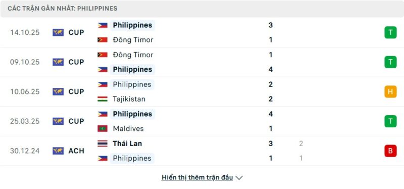 5 trận gần nhất của Philippines: W-W-D-W-L