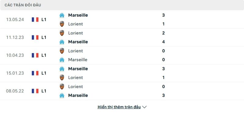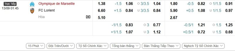 Bảng Tỷ lệ kèo bóng đá Marseille vs Lorient