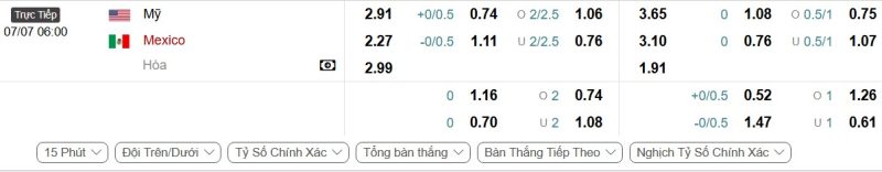 Bảng Tỷ lệ kèo bóng đá Mỹ vs Mexico