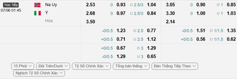 Bảng Tỷ lệ kèo bóng đá Na Uy vs Italia