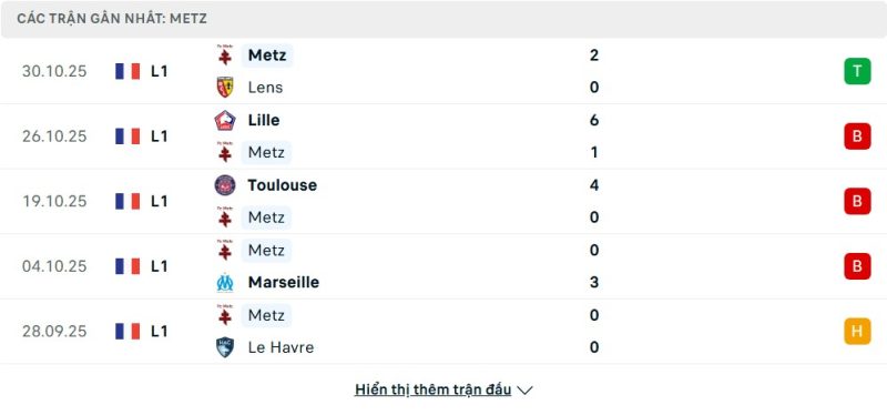 Bên kia chiến tuyến, Metz còn bi đát hơn khi họ đang đứng cuối bảng ở vị trí thứ 18 với vỏn vẹn 5 điểm. Sau 10 trận, họ mới chỉ có 1 chiến thắng duy nhất, 2 trận hòa và phải nhận tới 7 thất bại. Metz hiện là đội có hàng thủ tệ nhất giải đấu. Dù vừa có chiến thắng 2-0 quan trọng trước Lens, nhưng điều đó không thể che mờ chuỗi trận thảm hại trước đó, bao gồm các thất bại 1-6 trước Lille, 0-4 trước Toulouse và 0-3 trước Marseille. Họ rất cần điểm để thoát khỏi nhóm cầm đèn đỏ.
