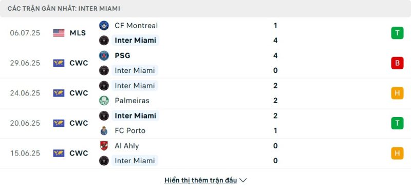5 trận gần nhất của Inter Miami CF: W-L-D-W-D