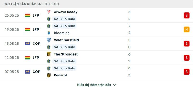 5 trận gần nhất của San Antonio Bulo-Bulo: L-D-L-L-L