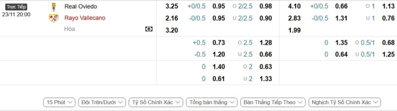 Bảng Tỷ lệ kèo bóng đá Oviedo vs Rayo Vallecano