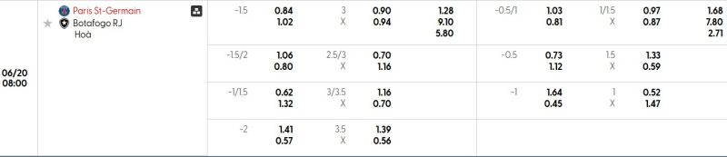Bảng Tỷ lệ kèo bóng đá Paris Saint-Germain vs Botafogo