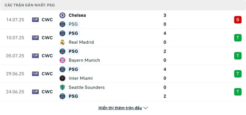 5 trận gần nhất của Paris Saint-Germain: L-W-W-W-W