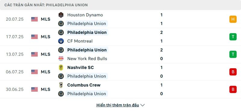 Philadelphia Union hiện đang giữ vị trí thứ 3 miền Đông và vẫn duy trì thế bám đuổi trong cuộc đua top đầu. Dù phong độ có lúc trồi sụt, nhưng họ đã bất bại ở 3 trận gần nhất và từng thắng CF Montreal cũng như giữ điểm trên sân Houston Dynamo. Hàng thủ có lúc mất tập trung, nhưng tuyến trên vẫn biết cách tạo đột biến. Trên sân nhà, Union vẫn luôn thi đấu đầy máu lửa và là một trong những đội đá sân nhà hiệu quả nhất miền Đông mùa này.