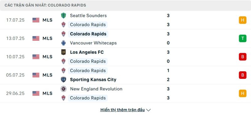 5 trận gần nhất của Colorado Rapids: D-W-L-L-D
