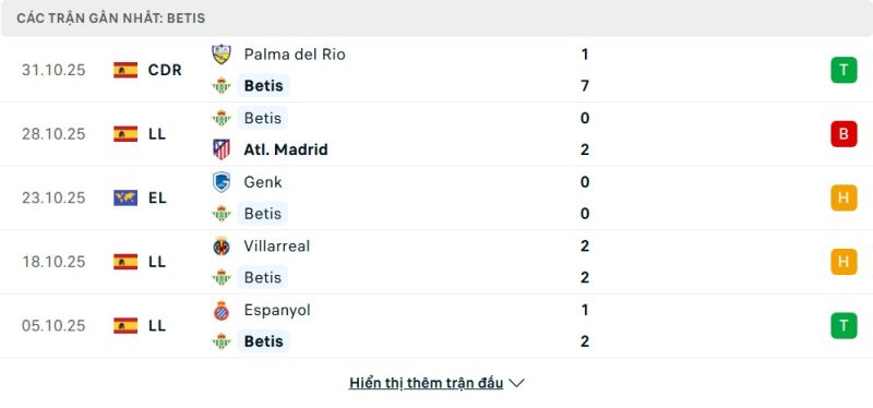 Real Betis đang có giai đoạn đầu mùa giải 2025/26 với phong độ tương đối thất thường. Thầy trò Manuel Pellegrini đang phải chia sức cho cả đấu trường Europa League, điều này ảnh hưởng không nhỏ đến kết quả của họ tại La Liga. Đội chủ sân Benito Villamarín vừa trải qua 3 trận liên tiếp không thắng ở giải quốc nội, bao gồm thất bại 0-2 trước Atletico Madrid và trận hòa 2-2 đáng tiếc với Villarreal. Xen kẽ là trận hòa 0-0 với Genk ở cúp châu Âu, cho thấy hàng công đang có dấu hiệu chững lại.