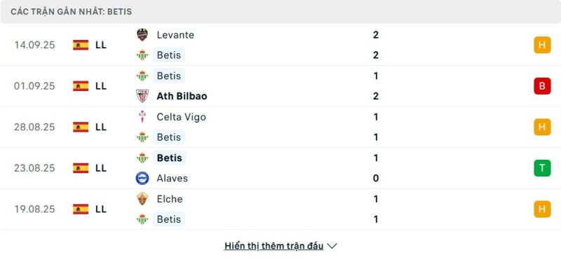 Thống kê phong độ gần đây Real Betis vs Real Sociedad