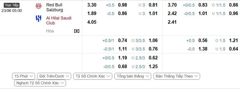 Bảng Tỷ lệ kèo bóng đá Red Bull Salzburg vs Al-Hilal