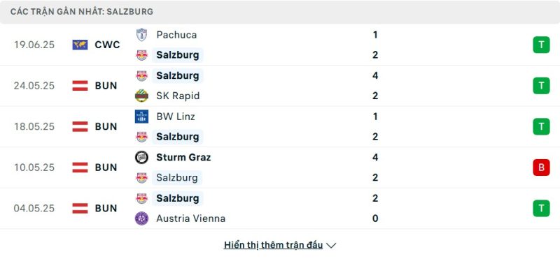 5 trận gần nhất của Red Bull Salzburg: W-W-W-L-W