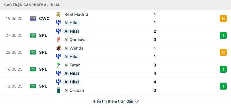 Phong độ của Al-Hilal