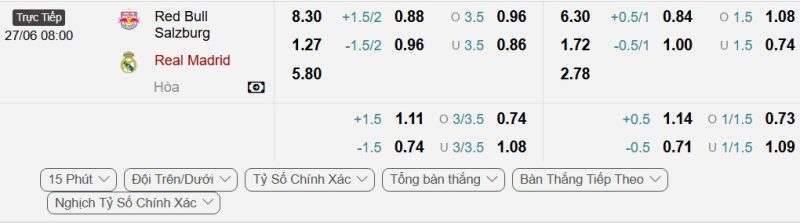 • Kèo tỷ số bóng đá hiệp 1: Red Bull Salzburg 1-2 Real Madrid