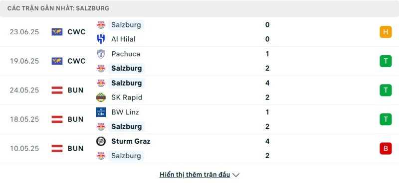 Red Bull Salzburg đã có một hành trình ấn tượng tại vòng bảng FIFA Club World Cup 2025. Họ mở màn bằng chiến thắng 2-1 trước Pachuca và tiếp tục giữ sạch lưới trong trận hòa 0-0 với Al-Hilal. Lối chơi máu lửa, đầy tốc độ và giàu năng lượng là điểm nhấn của đại diện nước Áo. Với 4 điểm sau hai lượt trận, họ đang tạm đứng thứ hai nhưng chỉ kém Real Madrid hiệu số. Một kết quả tích cực ở lượt cuối có thể giúp Salzburg tạo nên bất ngờ trước “ông lớn” của bóng đá châu Âu.