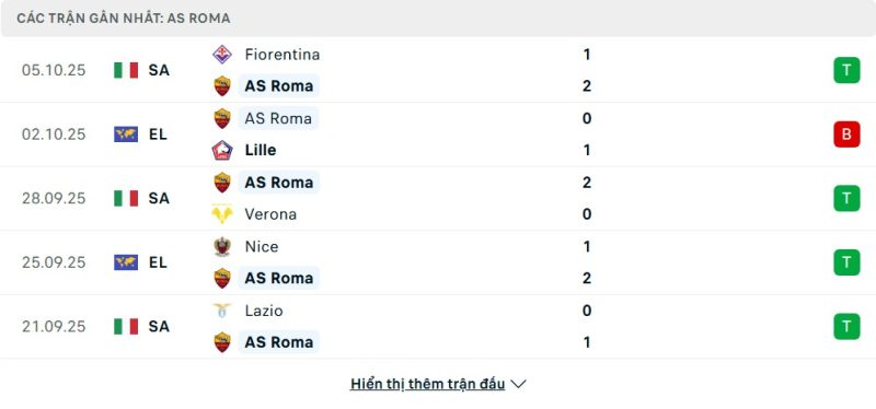Roma đang có một khởi đầu mùa giải như mơ. Sau 6 vòng đấu đầu tiên, đội bóng áo bã trầu đang hiên ngang ở vị trí thứ hai trên bảng xếp hạng Serie A với 15 điểm, chỉ kém đội đầu bảng Napoli về hiệu số. Họ đã giành được 5 chiến thắng ấn tượng và chỉ phải nhận một thất bại duy nhất. Phong độ sân nhà của Roma đặc biệt xuất sắc với những chiến thắng thuyết phục trước Fiorentina 2-1 và Verona 2-0, biến sân vận động Olimpico thành một pháo đài thực sự.