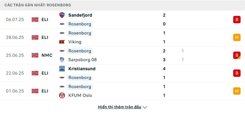 5 trận gần nhất của Rosenborg: L-D-D-L-D