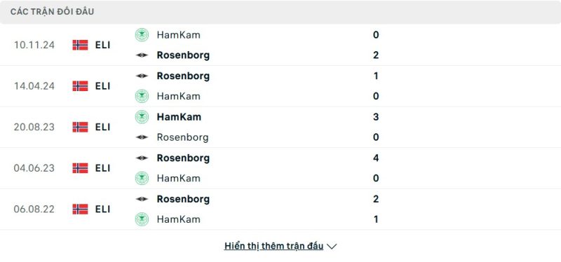 Thành tích đối đầu của Rosenborg vs HamKam