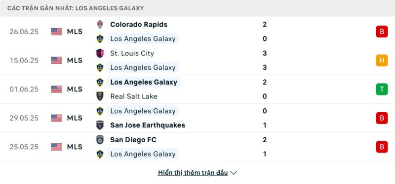 5 trận gần nhất của LA Galaxy: L-D-W-L-L