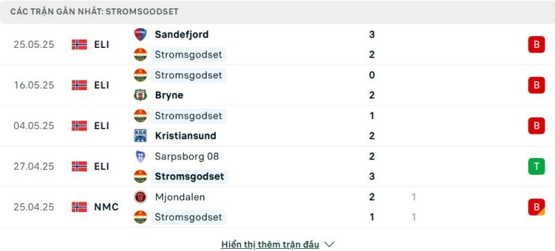 5 trận gần nhất của Strømsgodset: L-L-L-W-D