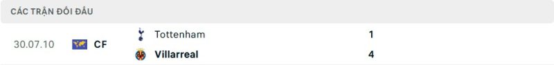 Thành tích đối đầu của Tottenham Hotspur vs Villarreal