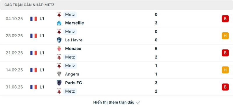 Metz đang rơi vào khủng hoảng khi chỉ giành được 2 điểm sau 7 trận, đứng cuối bảng xếp hạng Ligue 1 mùa này. Đội bóng của HLV Stephane Le Mignan để thua tới 5 trận, chỉ hòa Le Havre và Angers. Hàng thủ của họ thi đấu rời rạc, để lọt lưới đến 16 bàn trong khi hàng công mới ghi được 5 bàn. Những thất bại đậm trước AS Monaco, Lyon và Marseille cho thấy sự yếu kém toàn diện trong lối chơi. Metz cần một kết quả tích cực để vực dậy tinh thần, nhưng chuyến làm khách tới sân Toulouse rõ ràng là thử thách không dễ vượt qua.