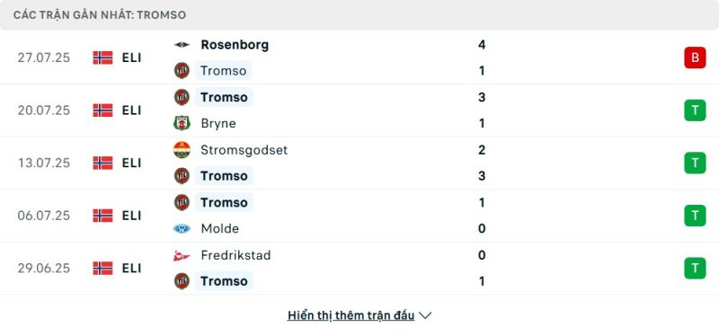 Thống kê phong độ gần đây Tromsø vs Fredrikstad