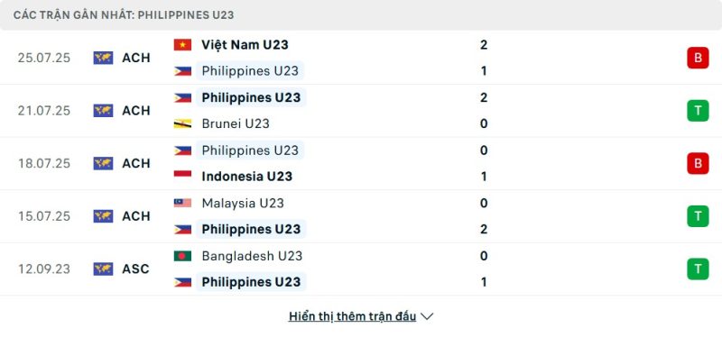 - Phong độ của U23 Philippines