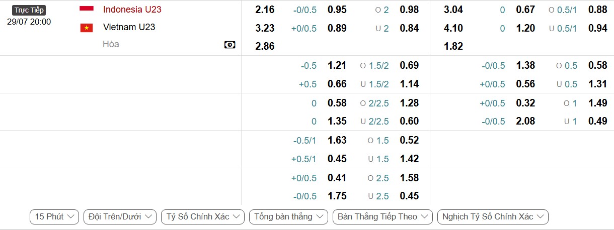 • Kèo châu Á Full Time: U23 Việt Nam +0.25