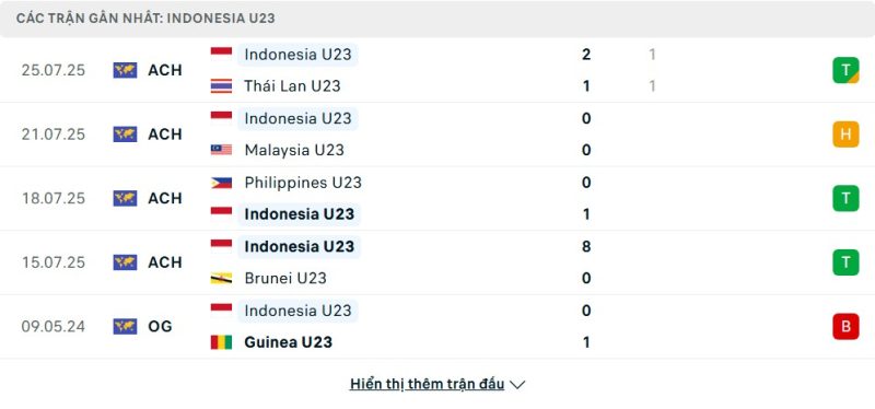 5 trận gần nhất của U23 Indonesia: D-D-W-W-L