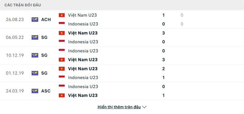 Thống kê phong độ gần đây U23 Việt Nam vs U23 Indonesia